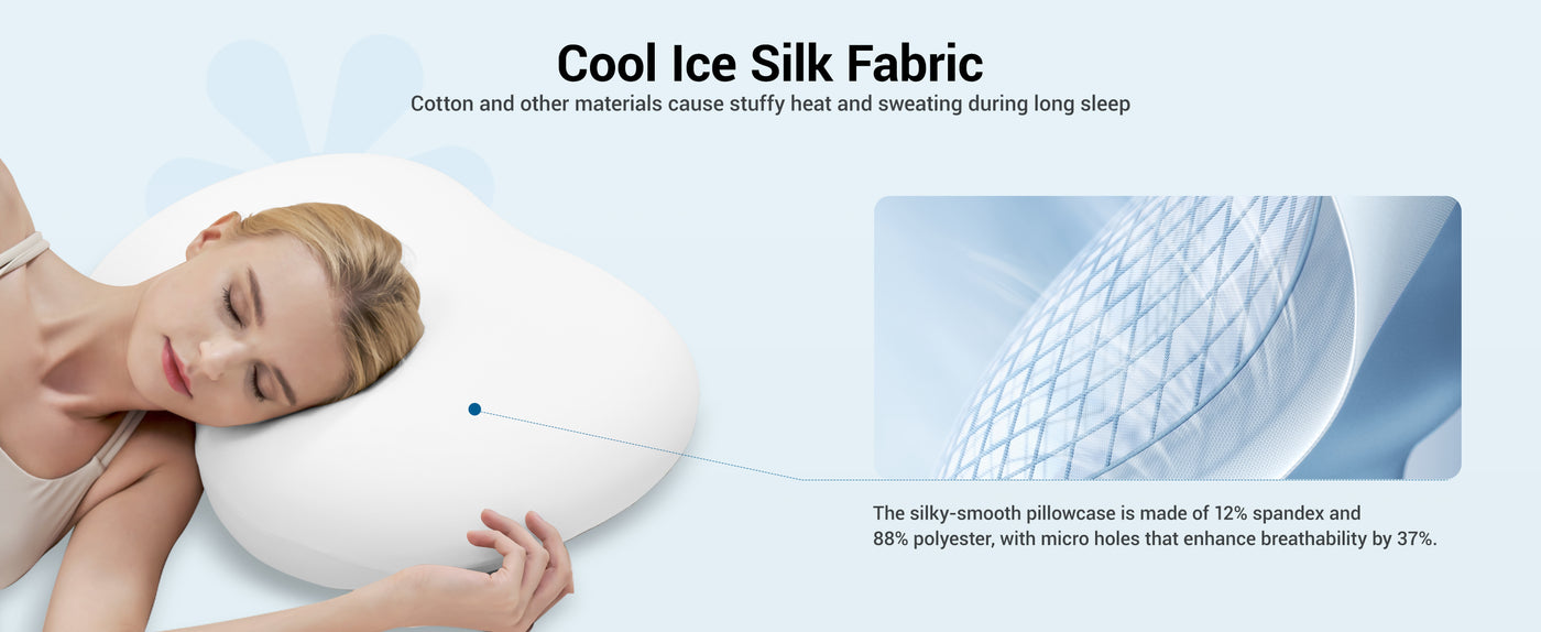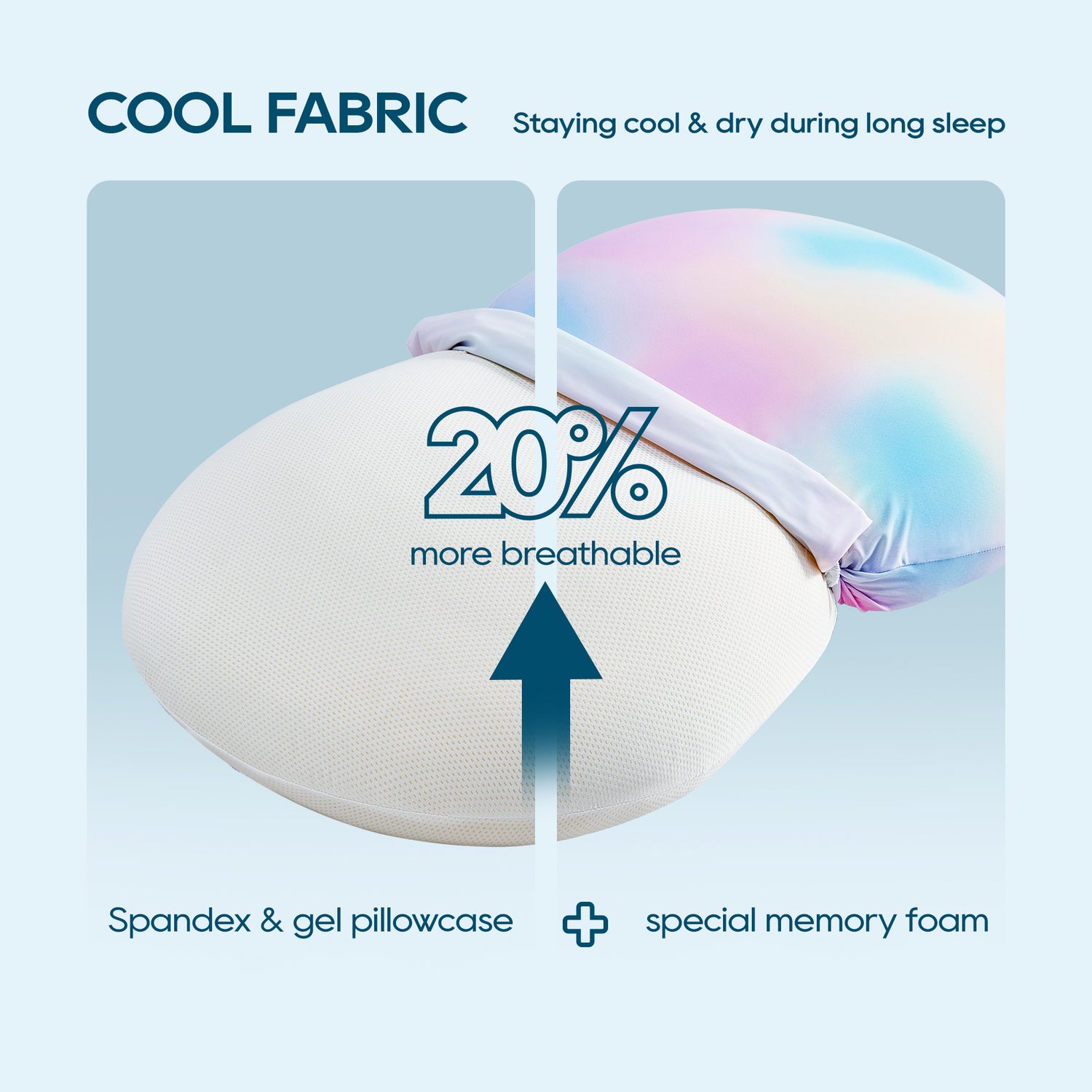 ·Cool material: No hot or sweaty feeling after long sleep, the pillowcase is made of spandex and gel, and the breathability of the special memory foam is increased by 20%