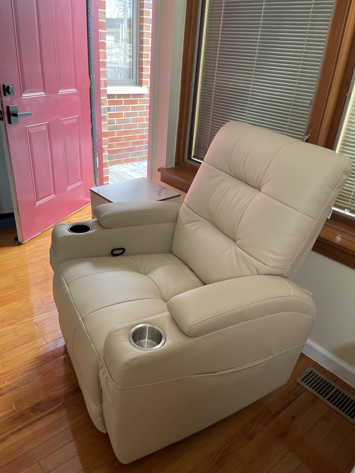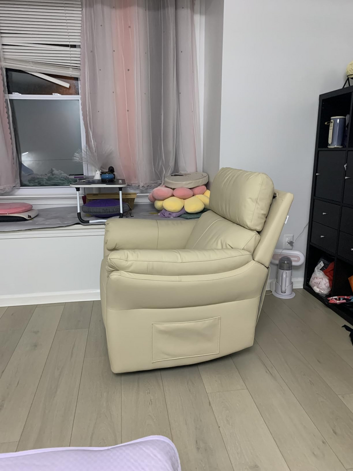 The chair almost does not need to be installed after receiving it, and it can be used directly. The design is simple and will not look out of place in the living room. My parents also tried it and they both felt very relaxed when sitting on it, especially when they could lie down. The leather surface is easy to take care of and can be cleaned with a damp cloth. The price is worthy of the quality, and it is recommended for people who like to lie down to read books or watch TV series.