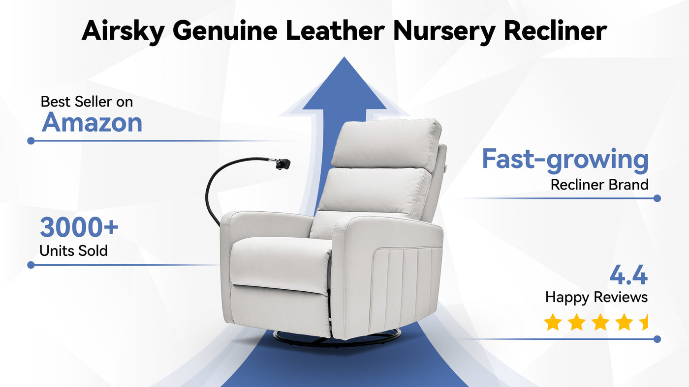 Airsky offers genuine leather and PU leather recliners. If cared for properly, this natural material will maintain its beauty and usefulness for many years. Direct exposure to strong light can cause any leather to fade, so always protect leather from direct sunlight or other intense light sources.